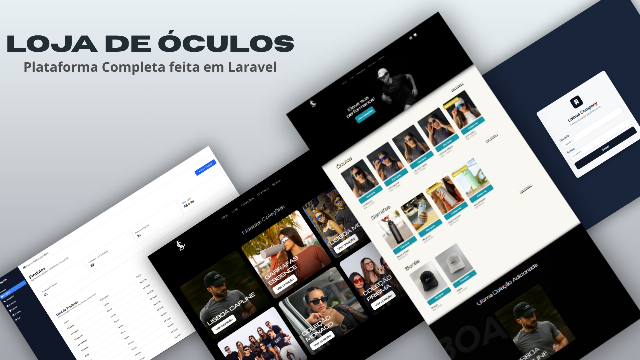 Loja de óculos com painel admin desenvolvida em Laravel. Completa, moderna e feita pra oferecer praticidade e controle total.